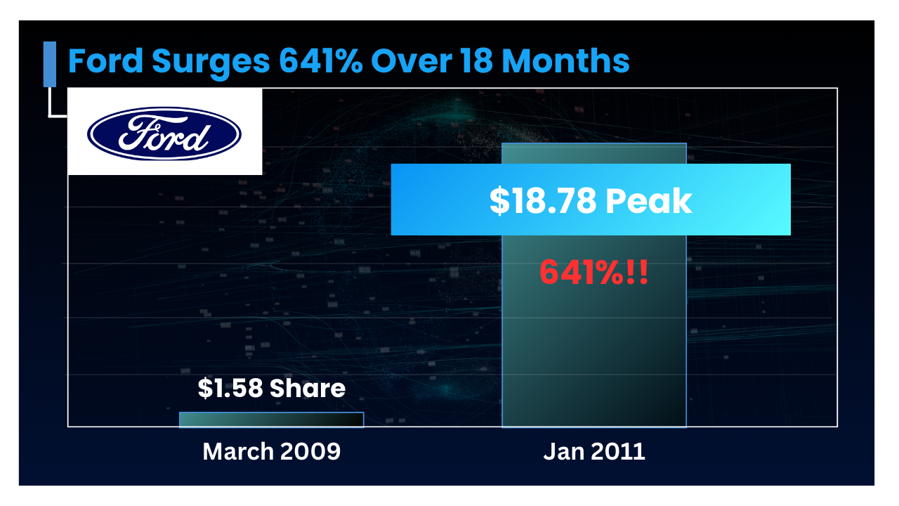 Ford Motor saw its stock surge 641% in about 18 months.